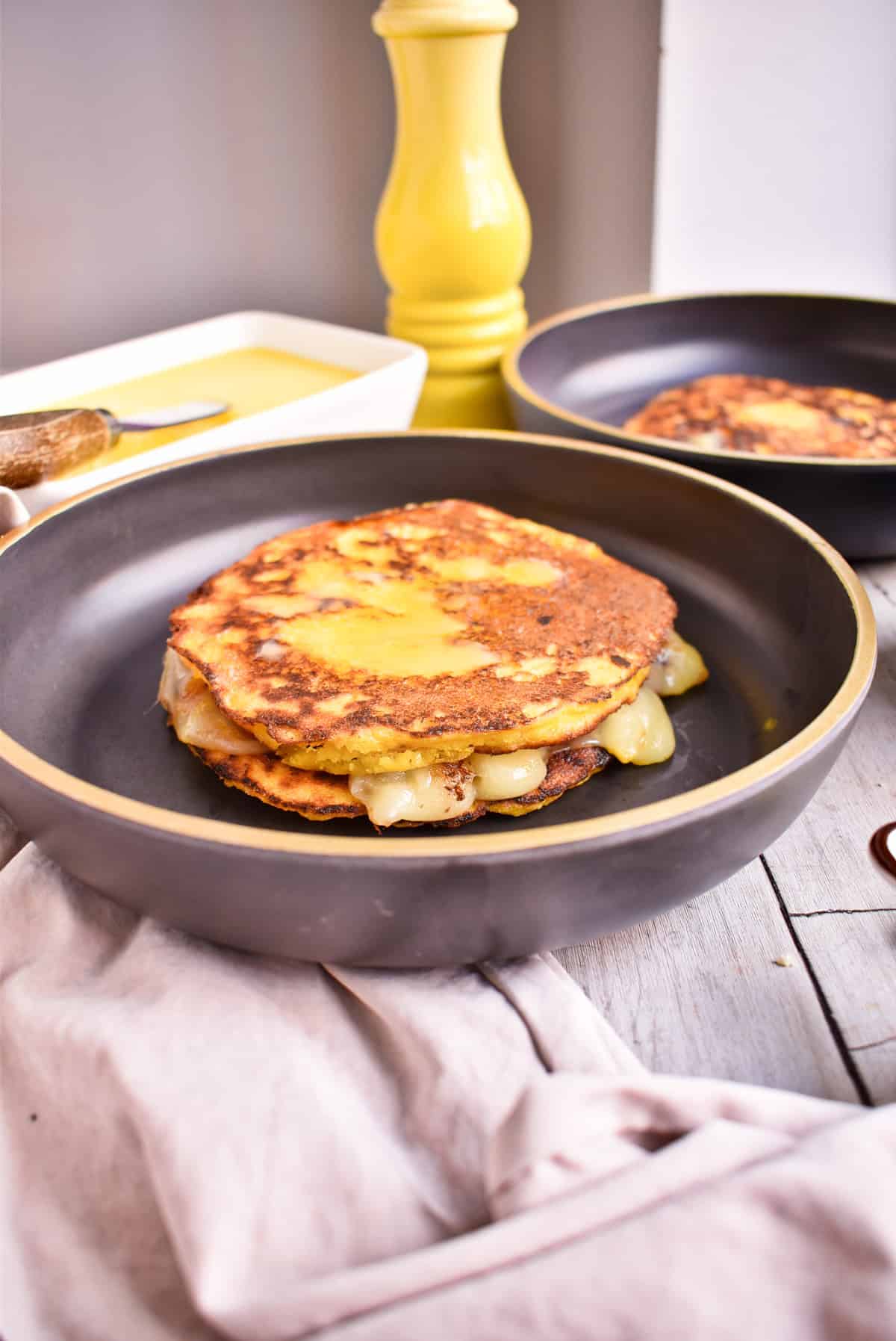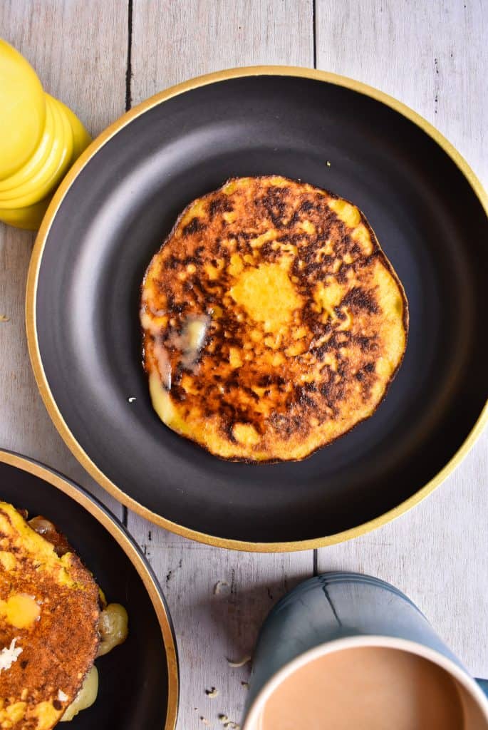 Calienta un sartén a fuego medio y agrega 2 cucharadas mantequilla clarificada (para asar). Con ½ taza, vierte la masa formando discos. Cocina 2–3 minutos por cada lado, hasta que estén doradas y firmes al tacto.