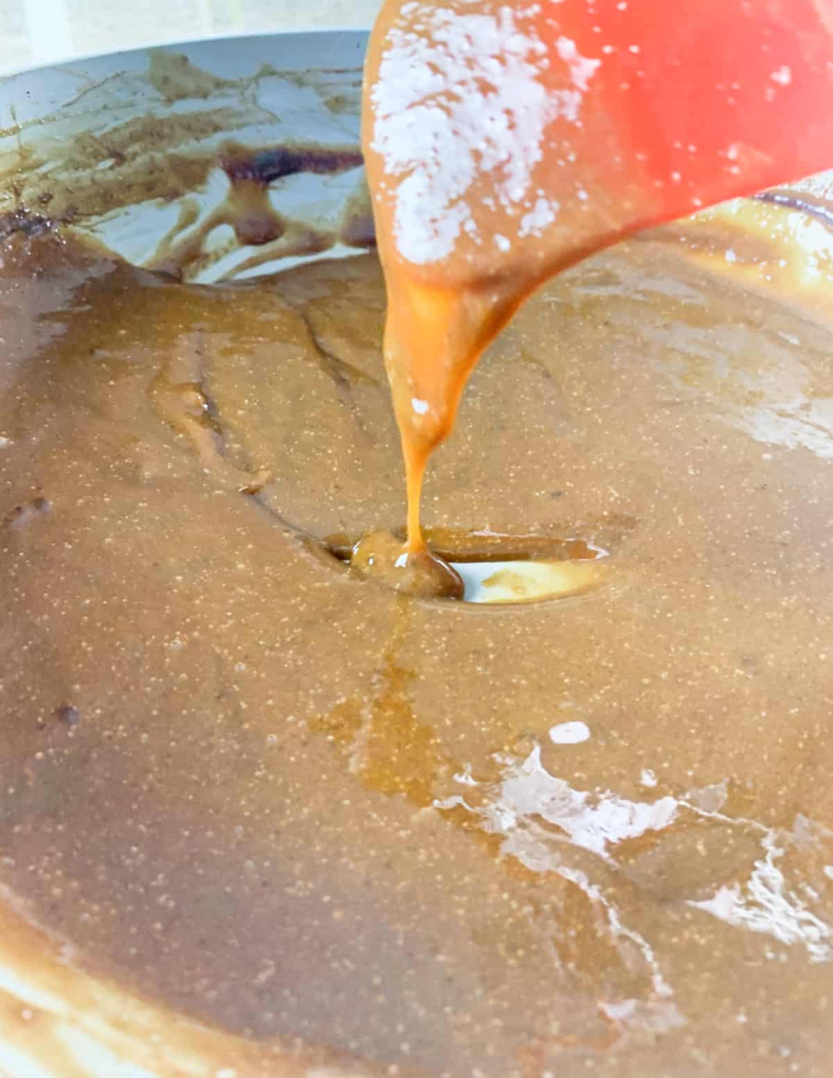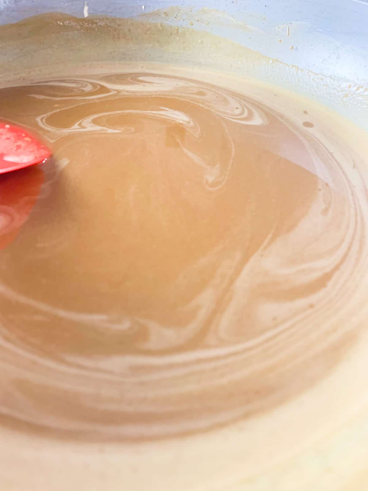 3. Mezcla con la ayuda de una espátula constantemente entre 8 y 10 minutos hasta que te quede esta textura