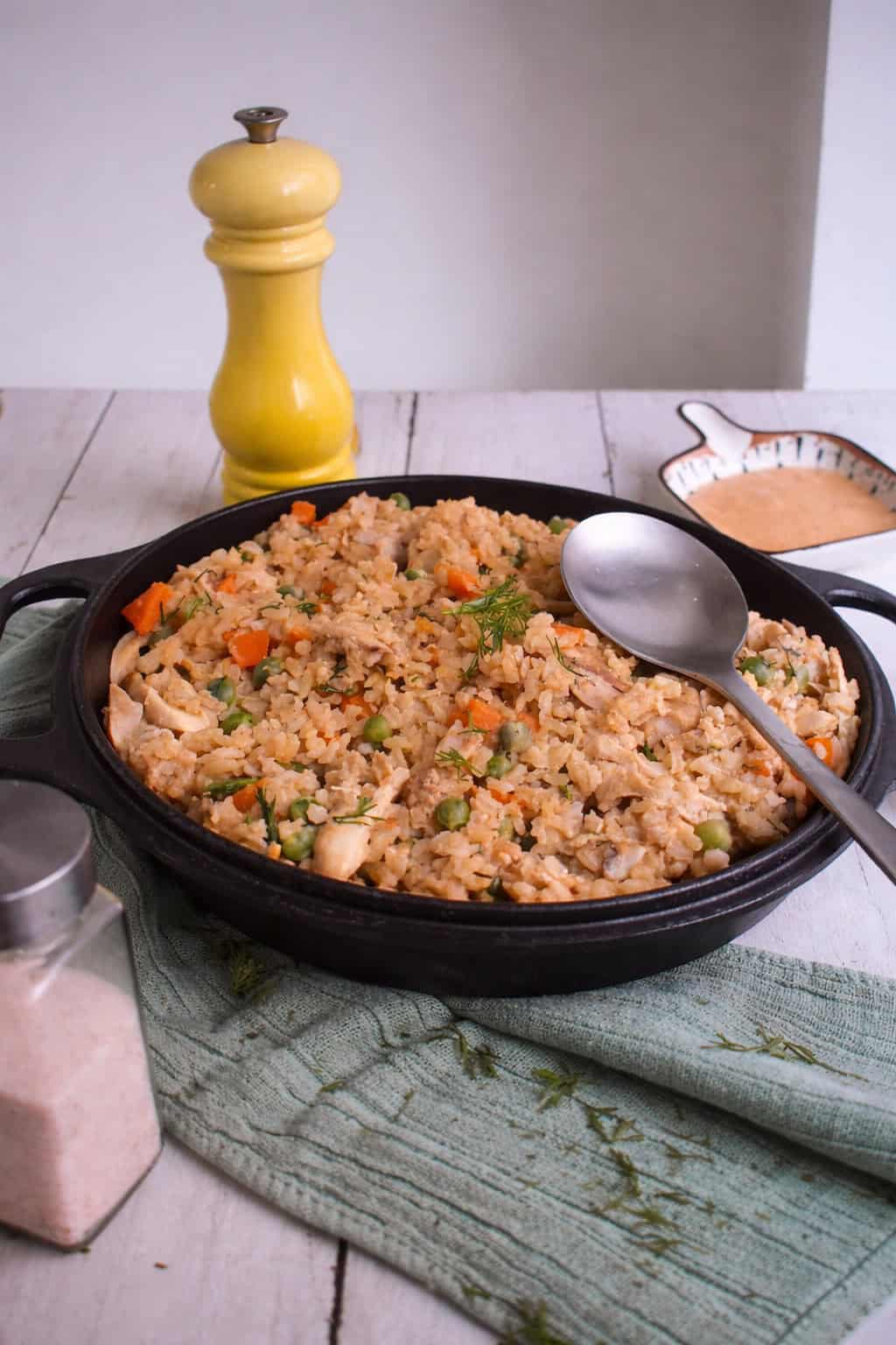 Arroz con pollo saludable que siempre quisiste hacer: arroz integral, salsa natural y todo el sabor de siempre.