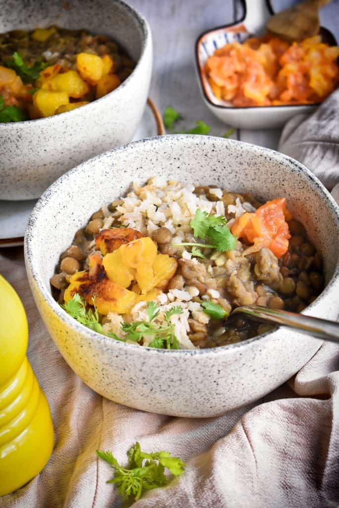 Las lentejas aportan fibra soluble, hierro, ácido fólico y un perfil proteico ideal para dietas vegetarianas. Cocinarlas a fuego bajo mejora la digestibilidad y permite que absorban mejor las especias naturales, sin necesidad de aditivos procesados.