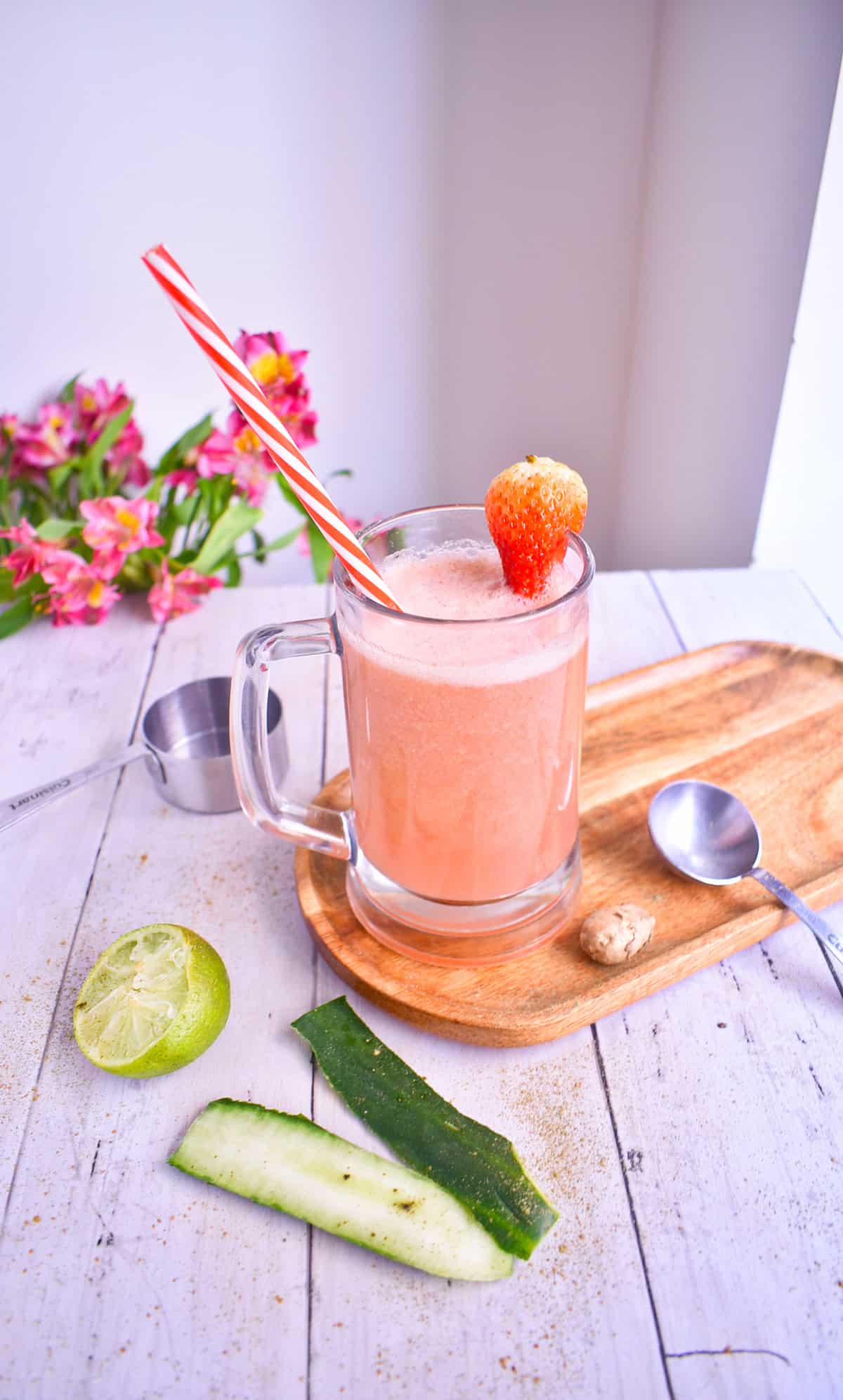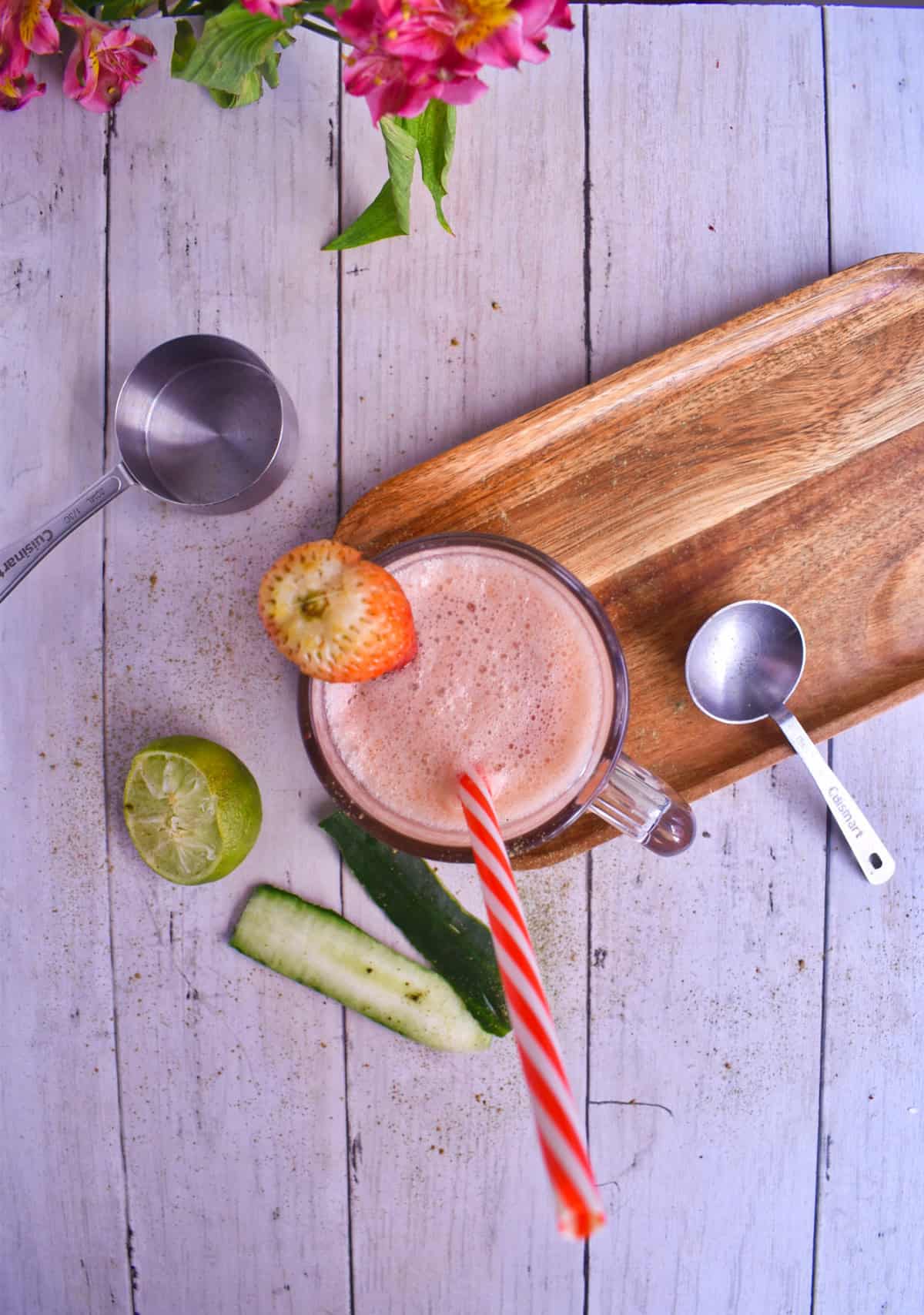 Ingredientes de Jugo Verde de Fresa, Pepino y Matcha