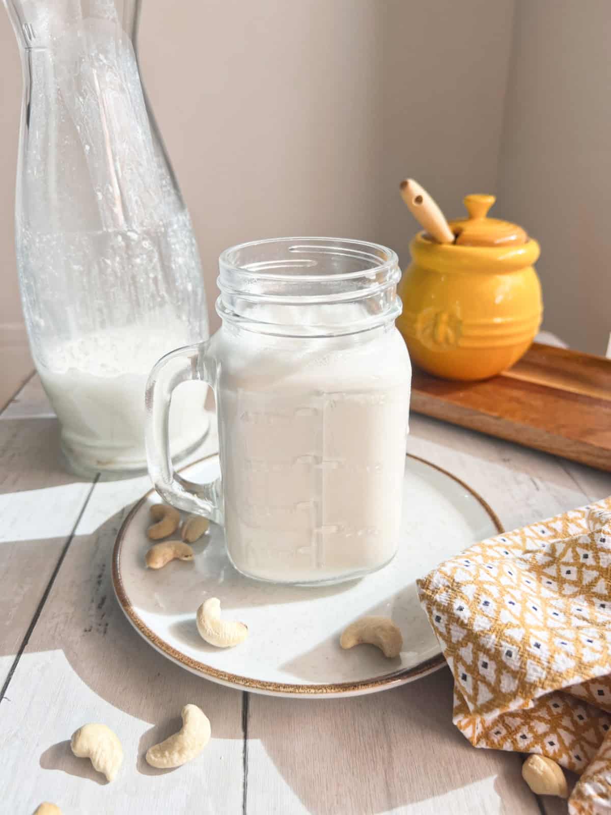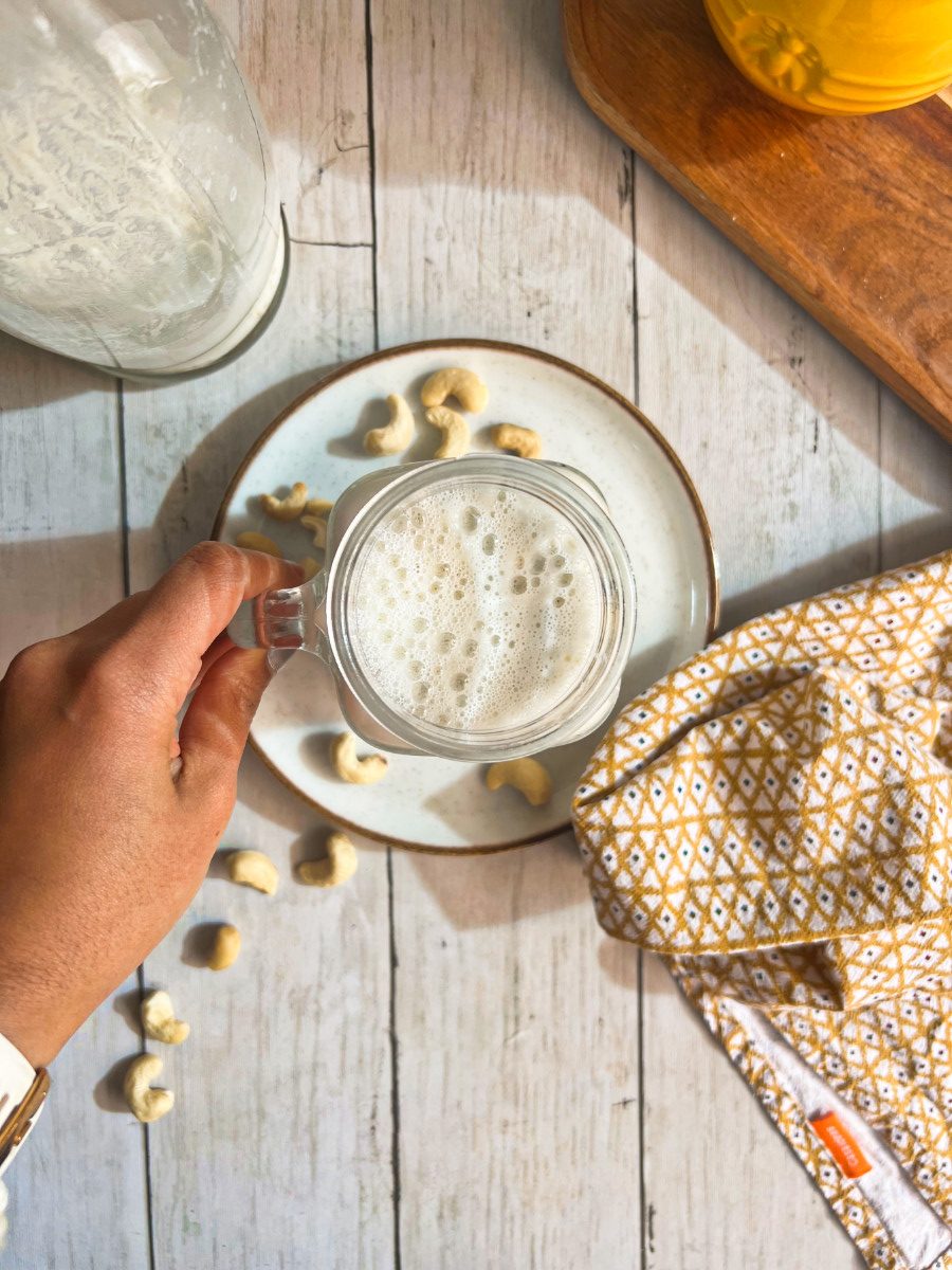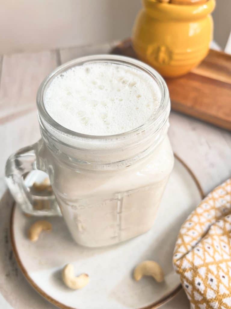 Vierte la leche de marañón en un frasco o botella de vidrio y guárdala en el refrigerador. Se mantendrá fresca durante unos 3-4 días. Asegúrate de agitar bien antes de cada uso, ya que puede separarse naturalmente.