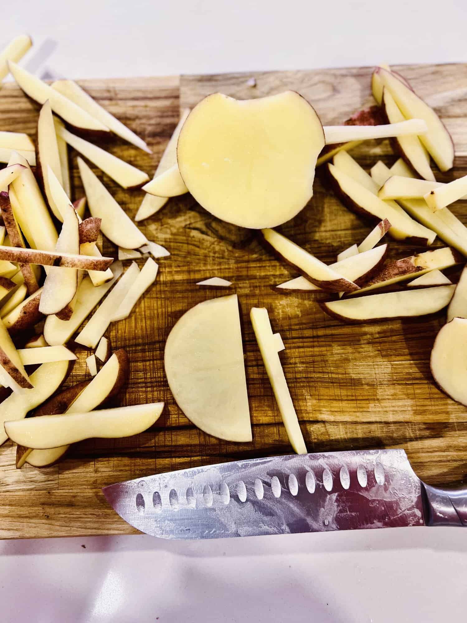 Corta las papas en palitos de mas o menos ¼ de pulgada de grosor