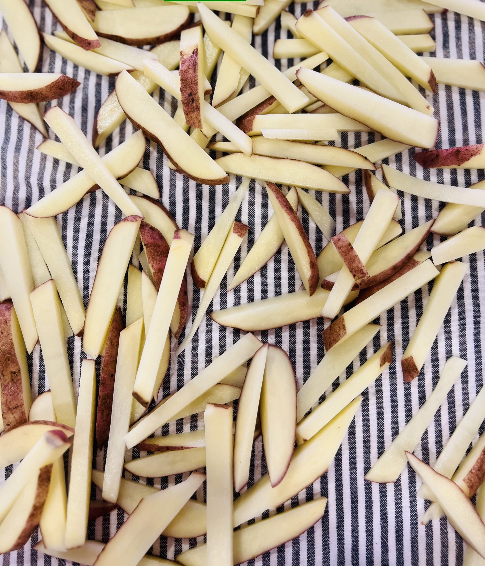 Después de tener las papas 30 minutos en la nevera, escúrrelas y lávalas. Después, llévalas sobre una toalla de papel o tela y sécalas muy bien