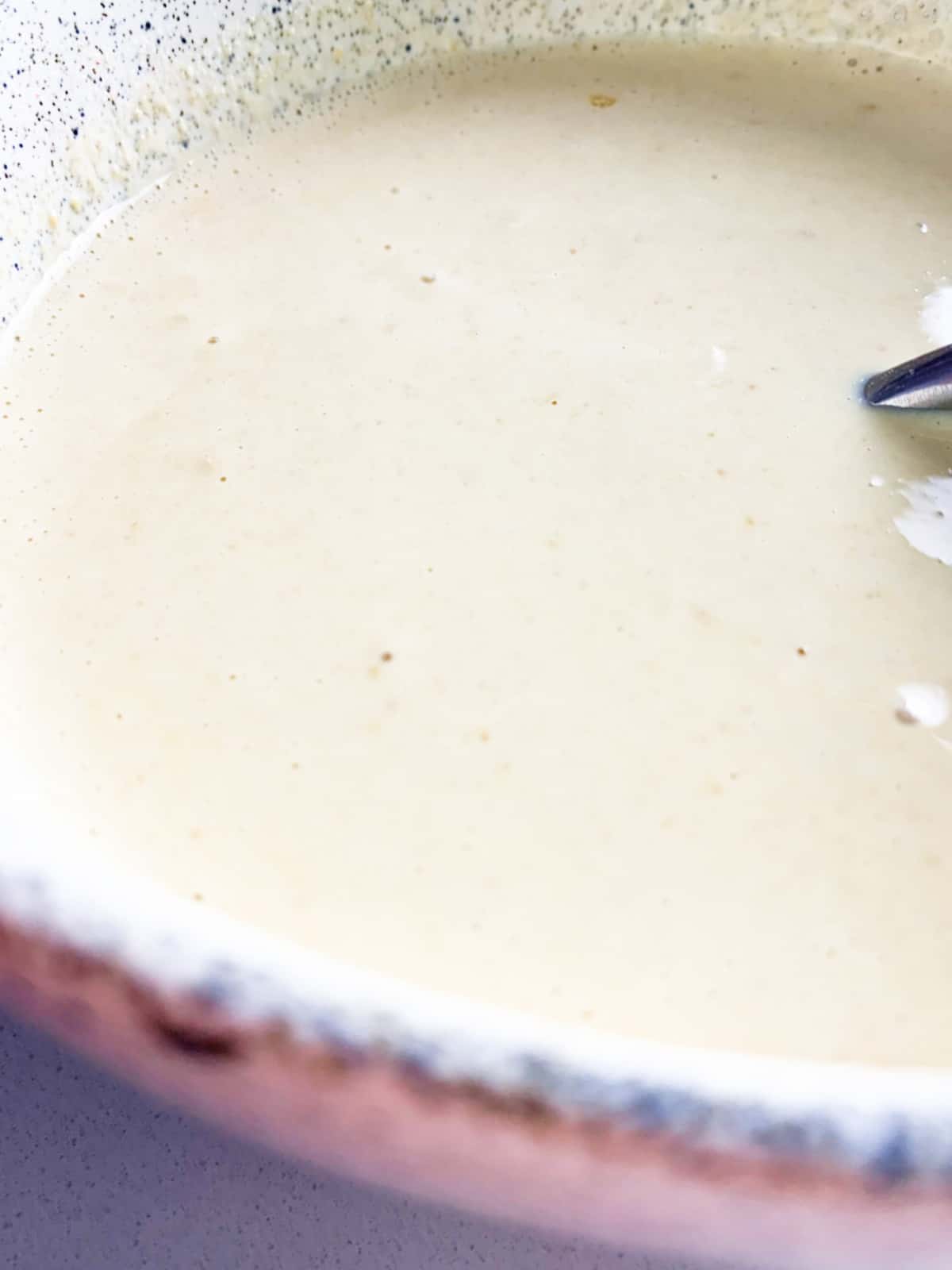 Lleva todos los ingredientes a un recipiente hondo y mezcla muy bien con la ayuda de un batidor o tenedor. Asegúrate que no te queden grumos.