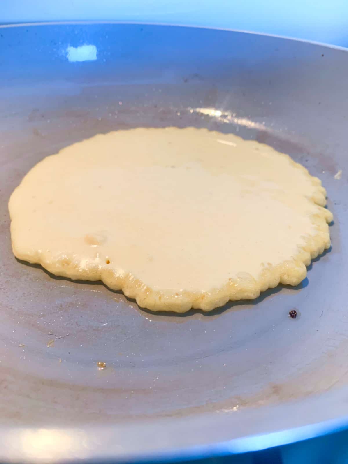 Cocina por dos minutos a fuego medio-bajo, voltea la tortilla y cocina por el otro lado por aproximadamente un minuto.