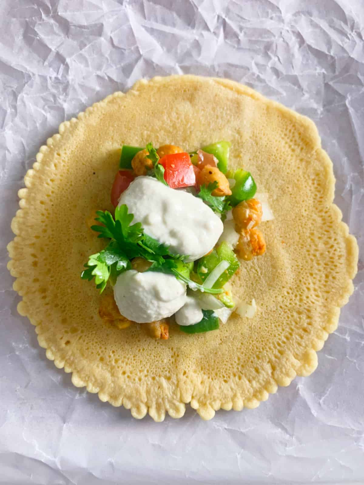 wrap de garbanzos, wraps saludables, tortilla de garbanzos, wrap vegetariano