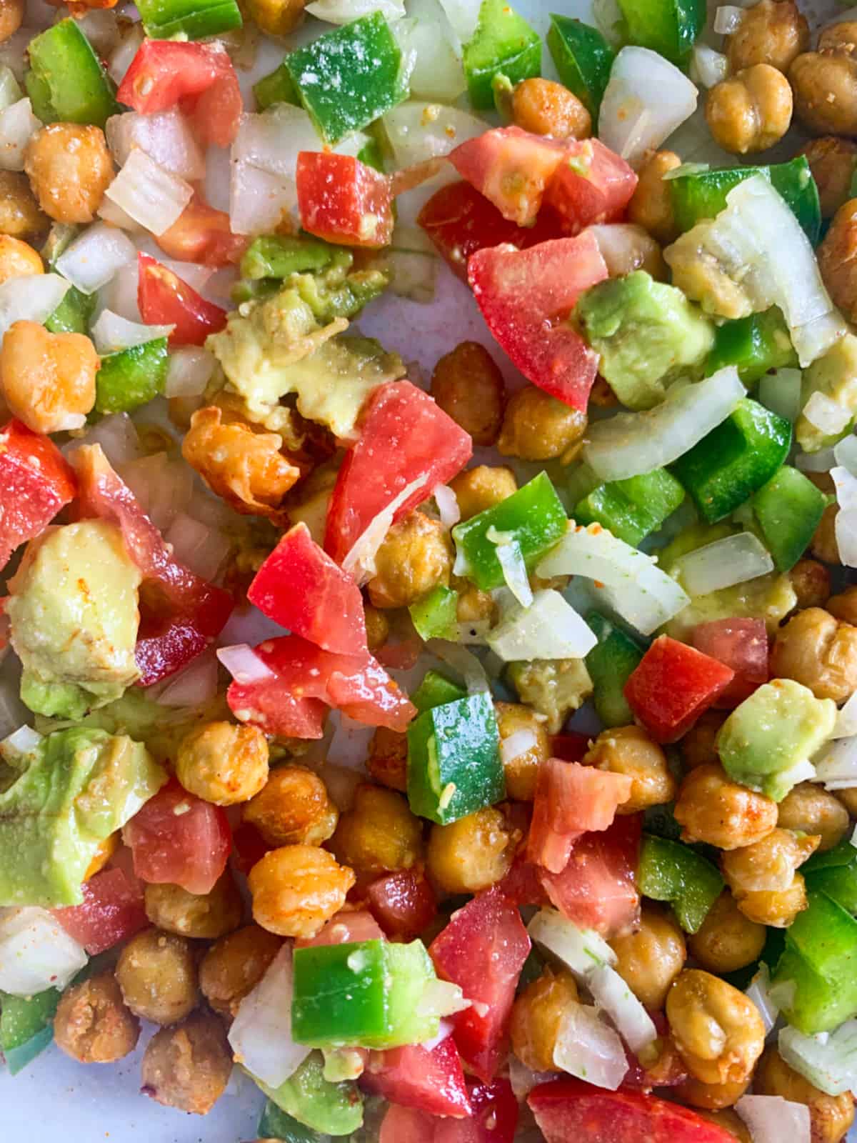 Mezcla las verduras y el aguacate en un recipiente hondo. Pongo sal, pimienta y limón al gusto